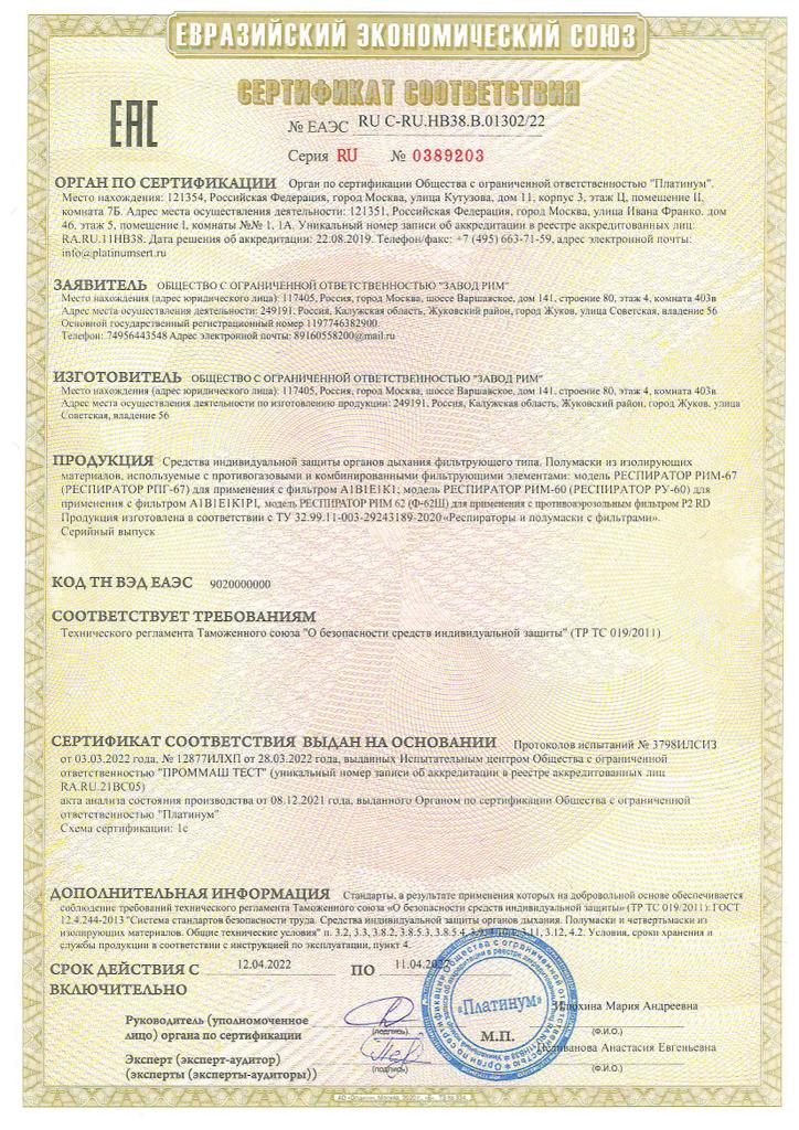 - Обеспечивает защиту от 10 до 15 ПДК