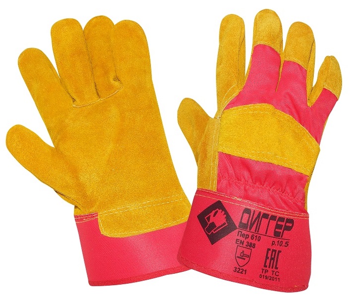 Перчатки ДИГГЕР спилковые комбинированные усиленные упредназначены для защиты рук от механического воздействия (истирание, прокол, порез). Перчатки изготовлены из кожевенного спилка крупного рогатого скота (КРС) и плотной хлопковой ткани. Спилок коровий, мягкий, сорта АВ (1,3 мм +/– 0,2 мм). Хлопчатобумажная подкладка на ладонной части. Двойные швы. Полное покрытие спилком большого и указательного пальцев. Усиленная крага для дополнительной защиты запястья. Высокая стойкость к истиранию, разрыву и проколу, ограниченная защита от пореза. Рекомендуются для всех отраслей промышленности, сельского хозяйства и сферы обслуживания в качестве надежной защиты от механических воздействий высокой и средней интенсивности, для защиты рук от ОПЗ, истирания, при работе с абразивами. Не рекомендуются к использованию в условиях влажной среды и атмосферных осадков.